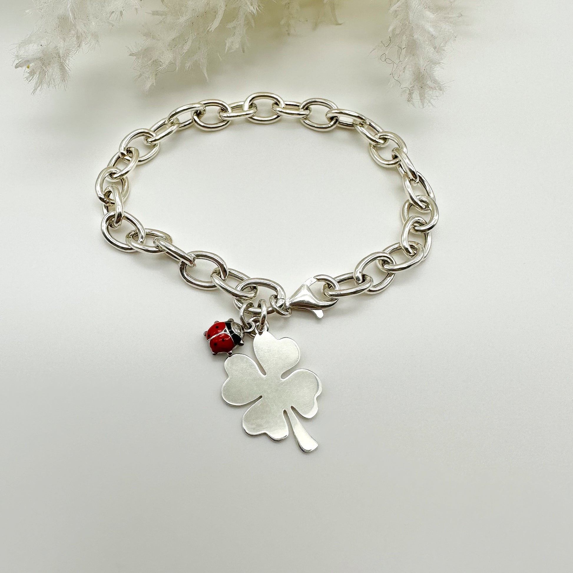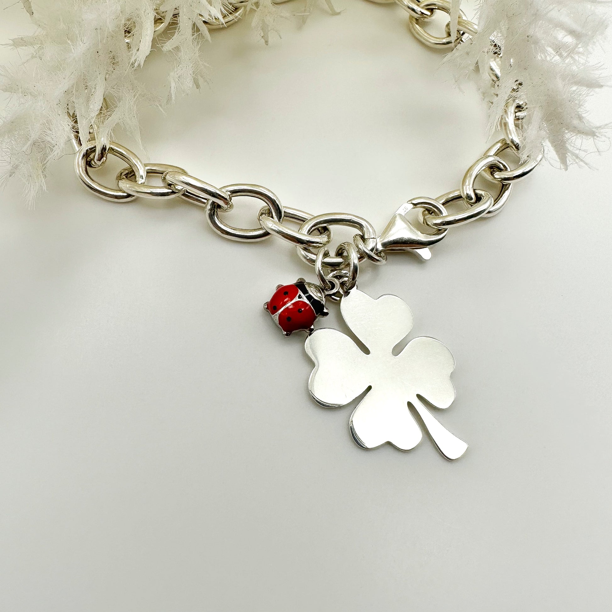Misure: 18 cm - coccinella 6 mm, quadrifoglio 16 mm