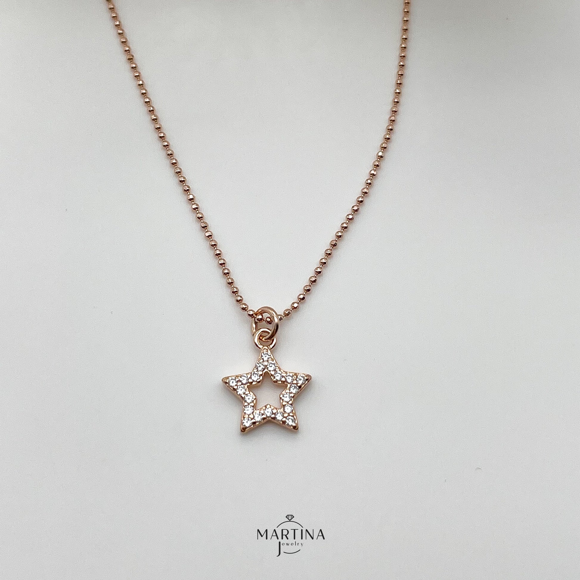 Collana palline diamantate e stella zirconi - Rosè