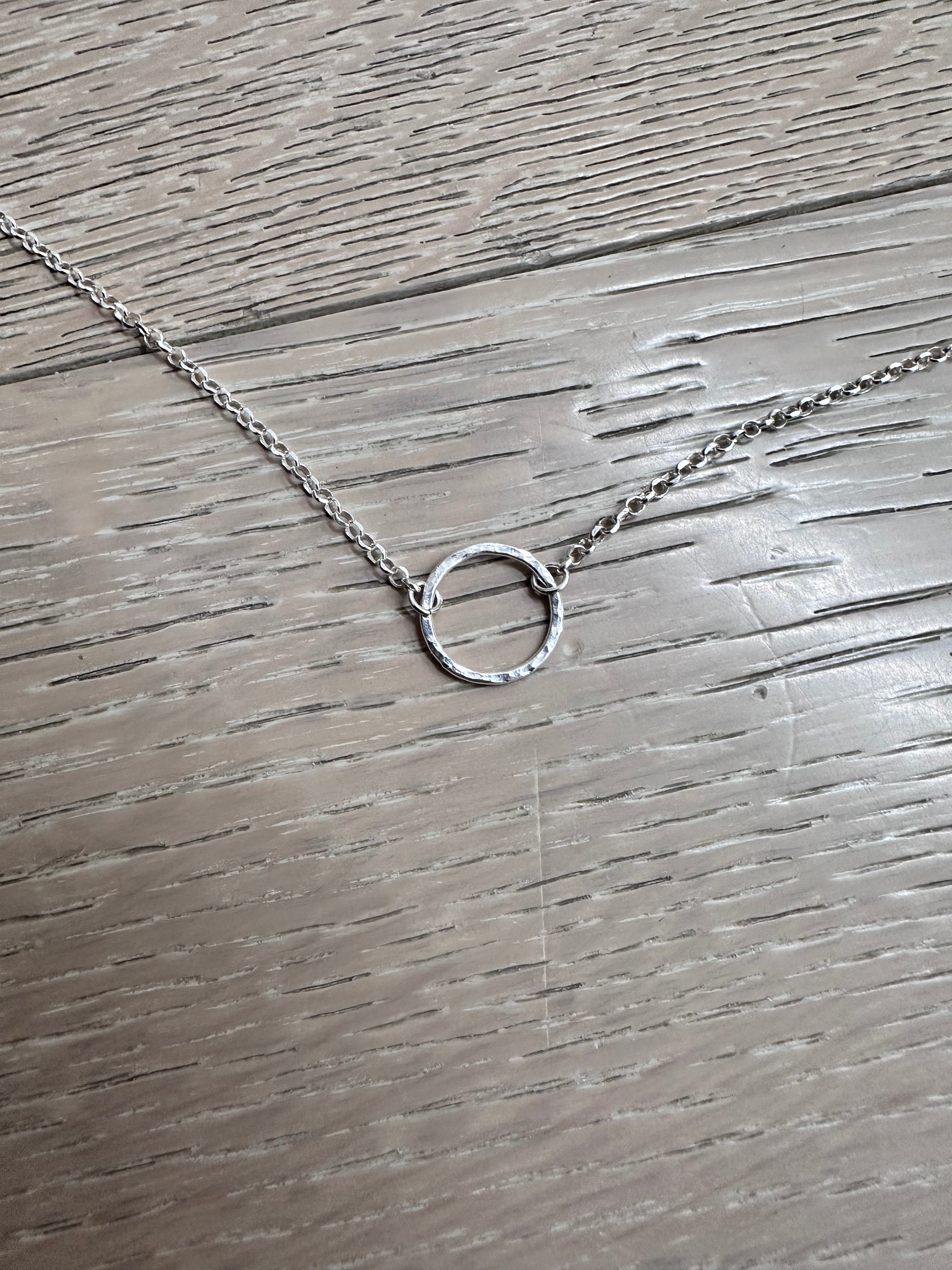 Collanina in argento 925 girocollo con medaglietta centrale battuta
