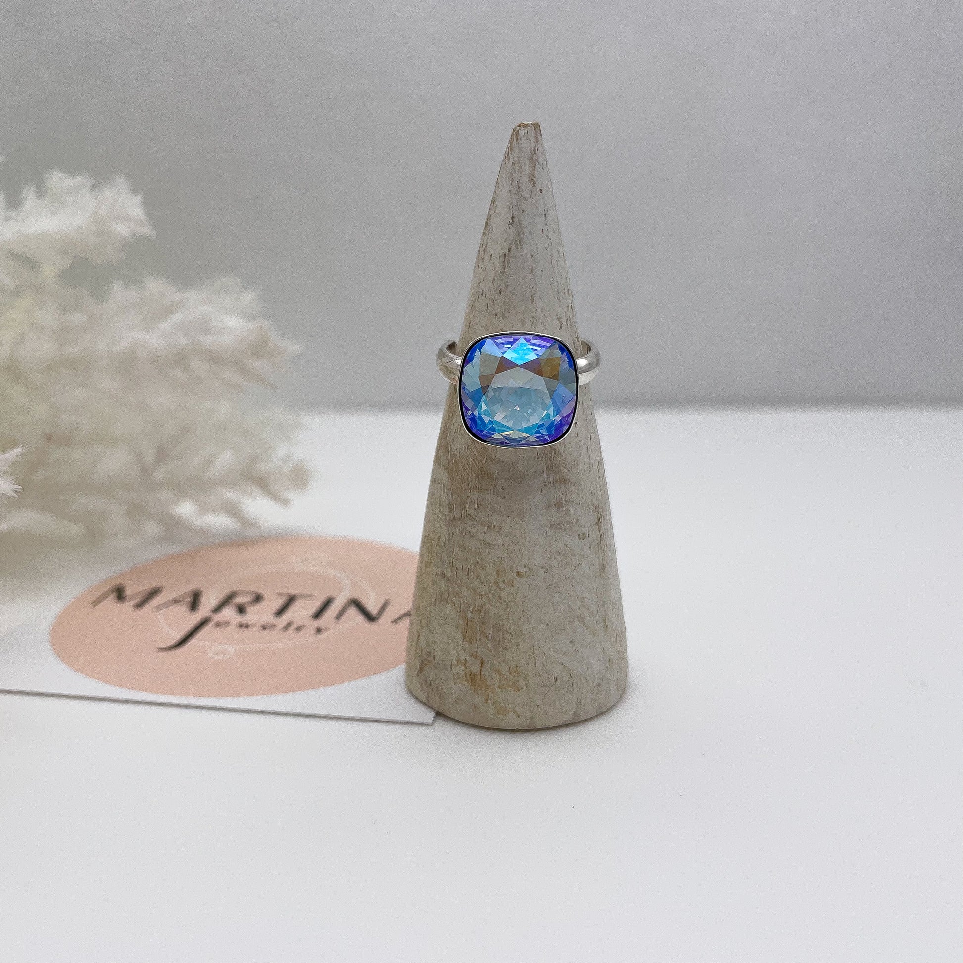 Anello con centrale quadrato Swarovski Blu paradiso - Silver