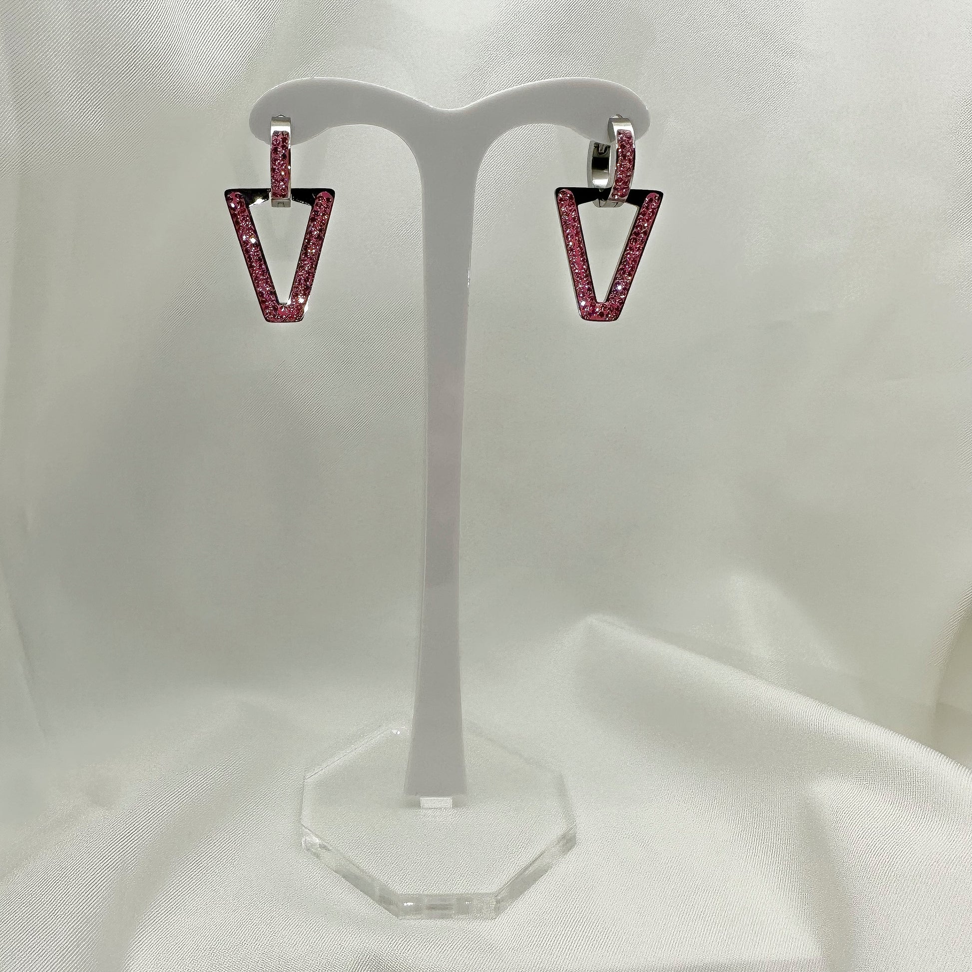 Orecchini a V stile Ferragni strass rosa - Silver