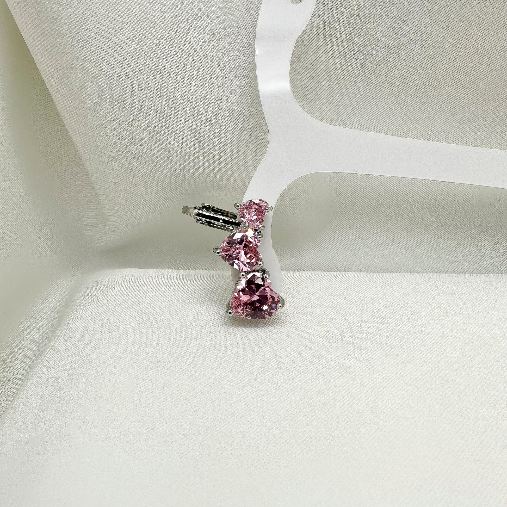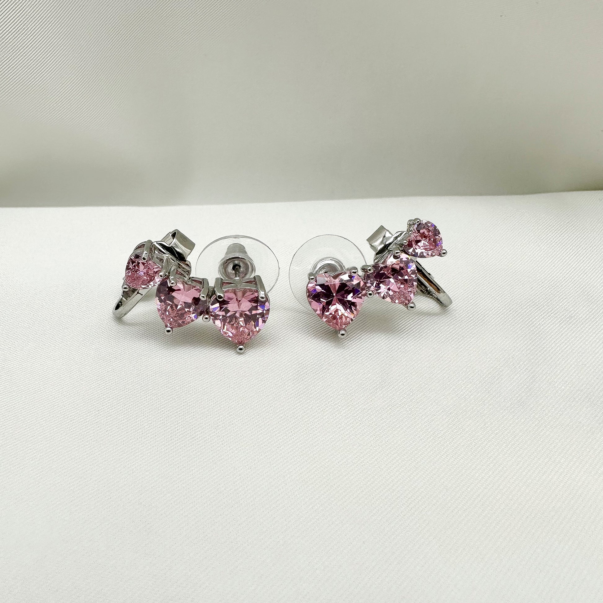 Orecchini ala laterale cuori rosa strass rosa - Silver