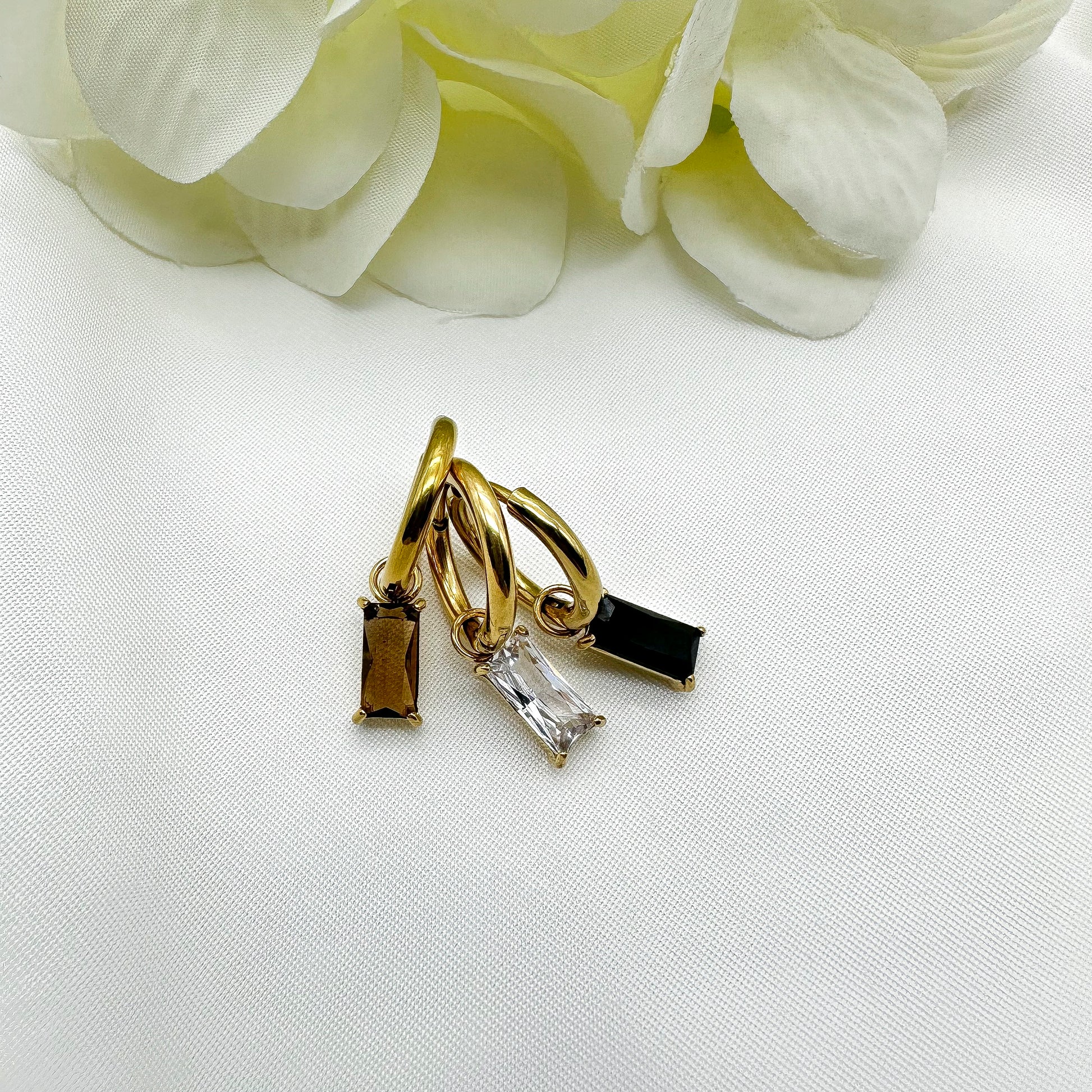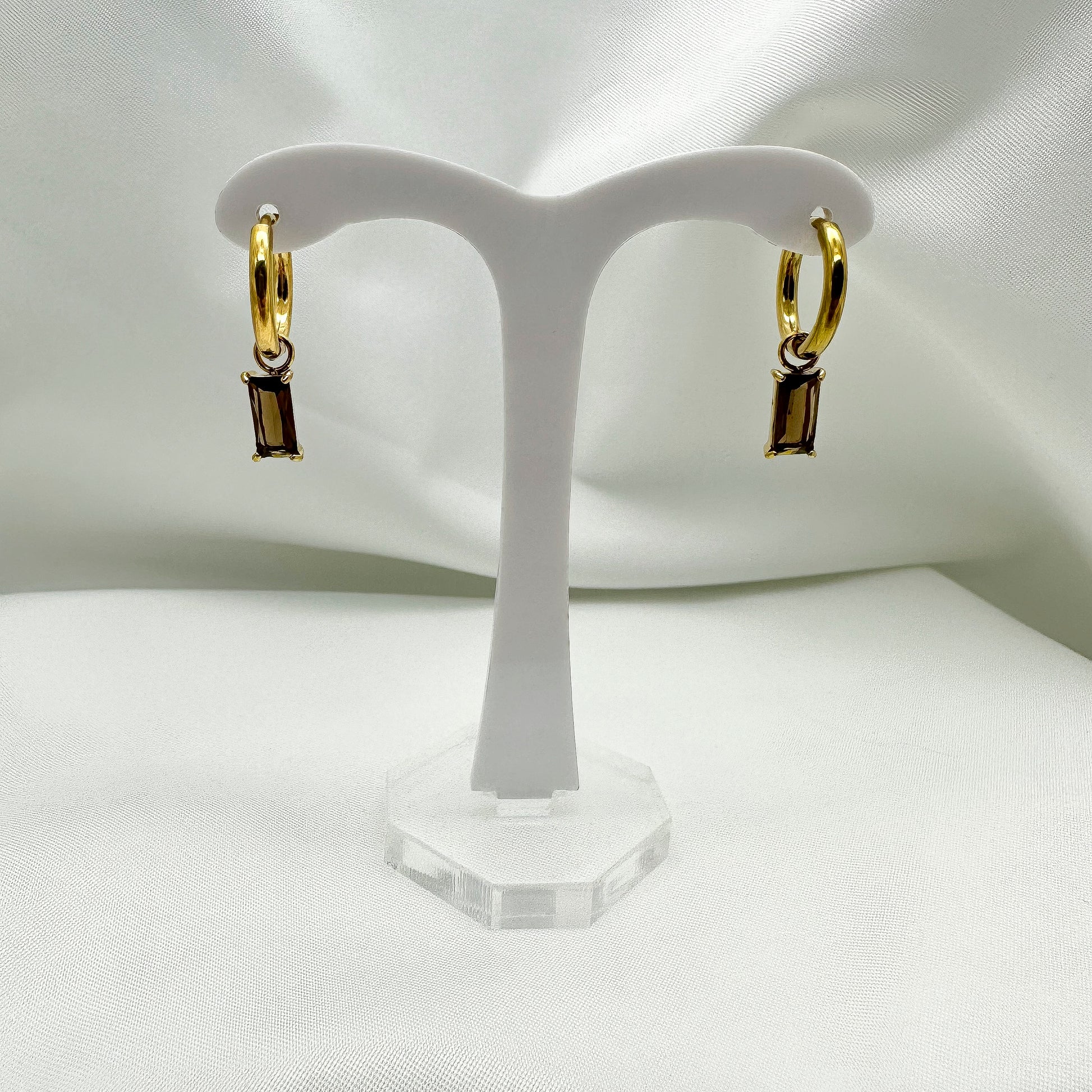 Orecchini cerchietti pendenti cristallo rettangolare Ambra scuro - Gold