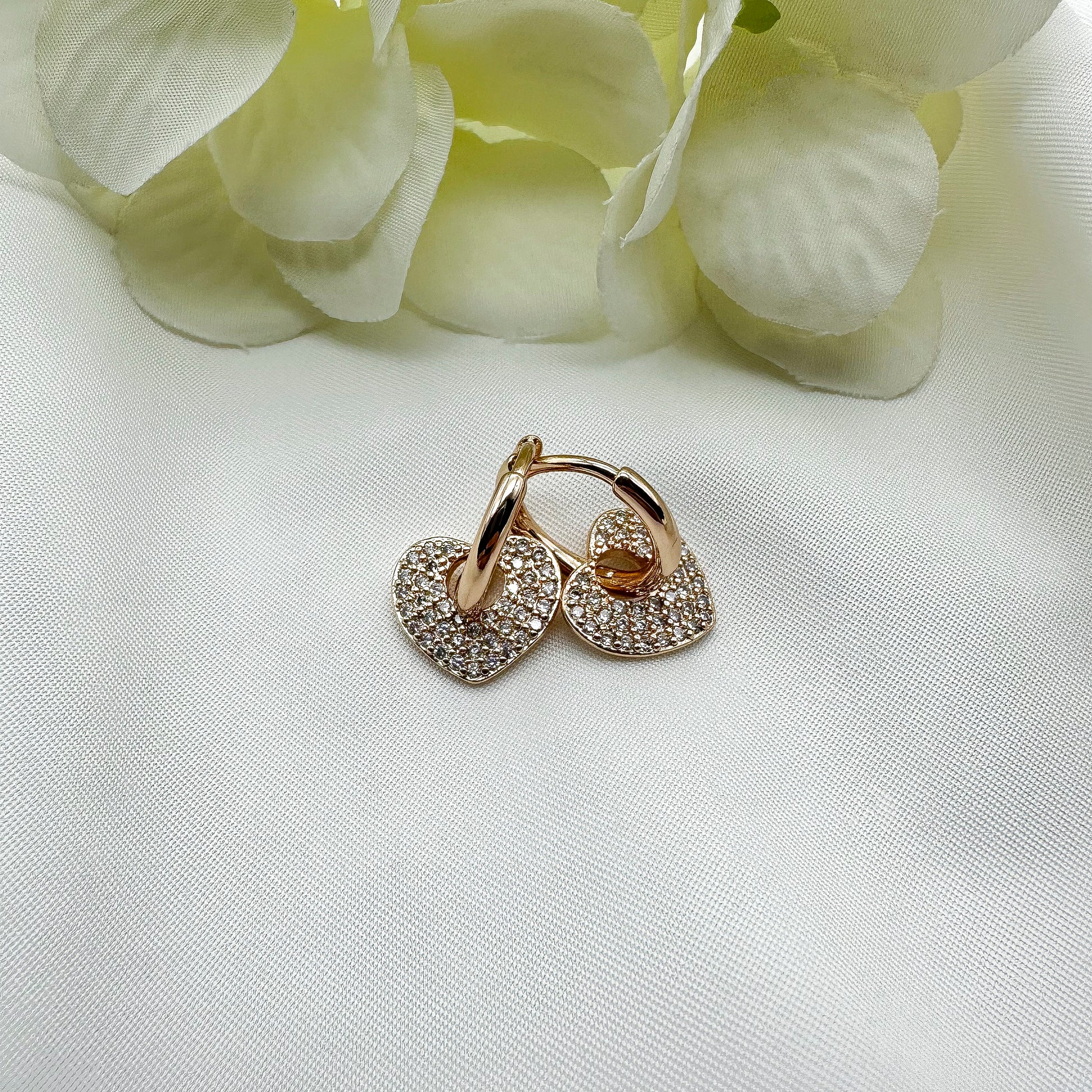 Orecchini cerchietti pendenti cuore zirconato - Gold