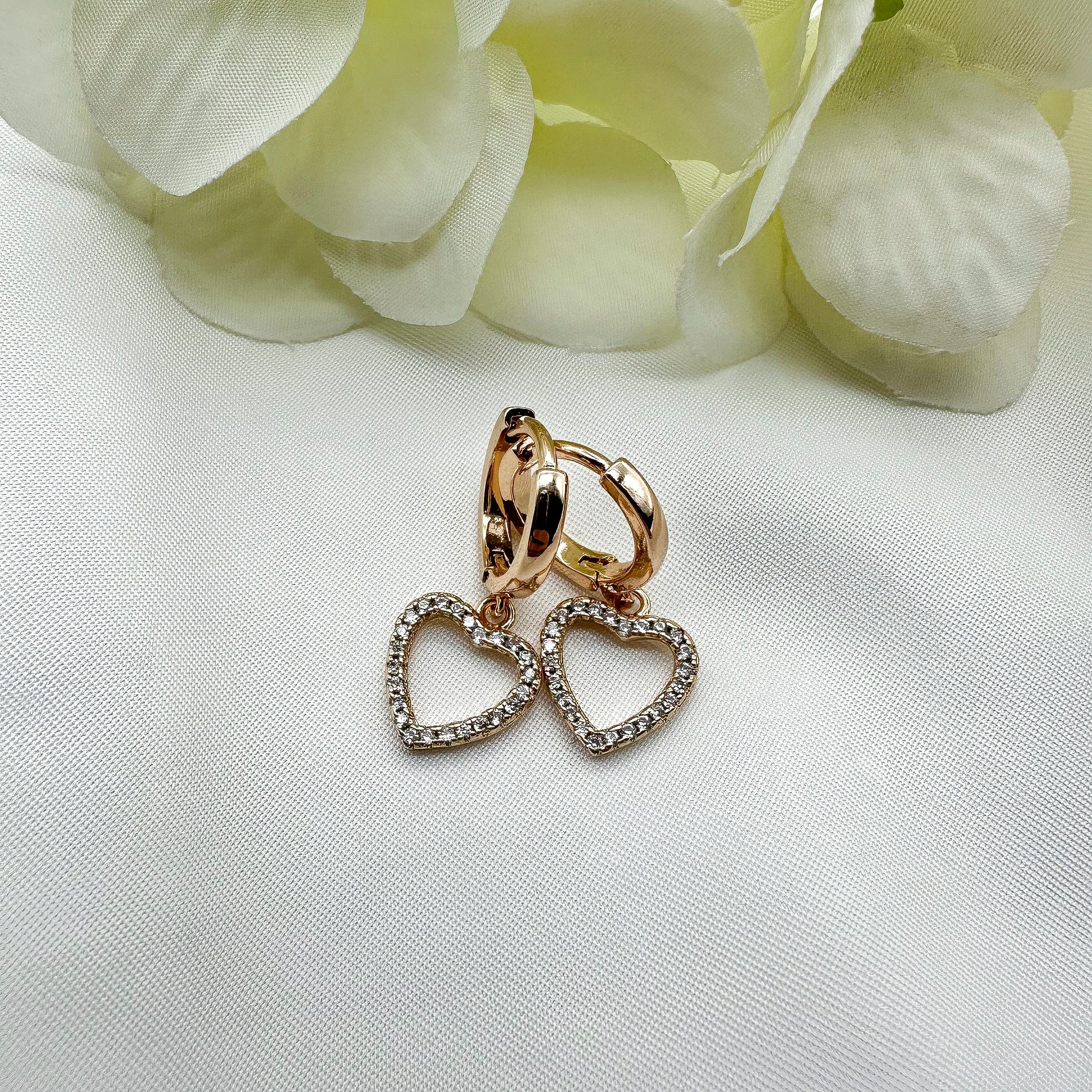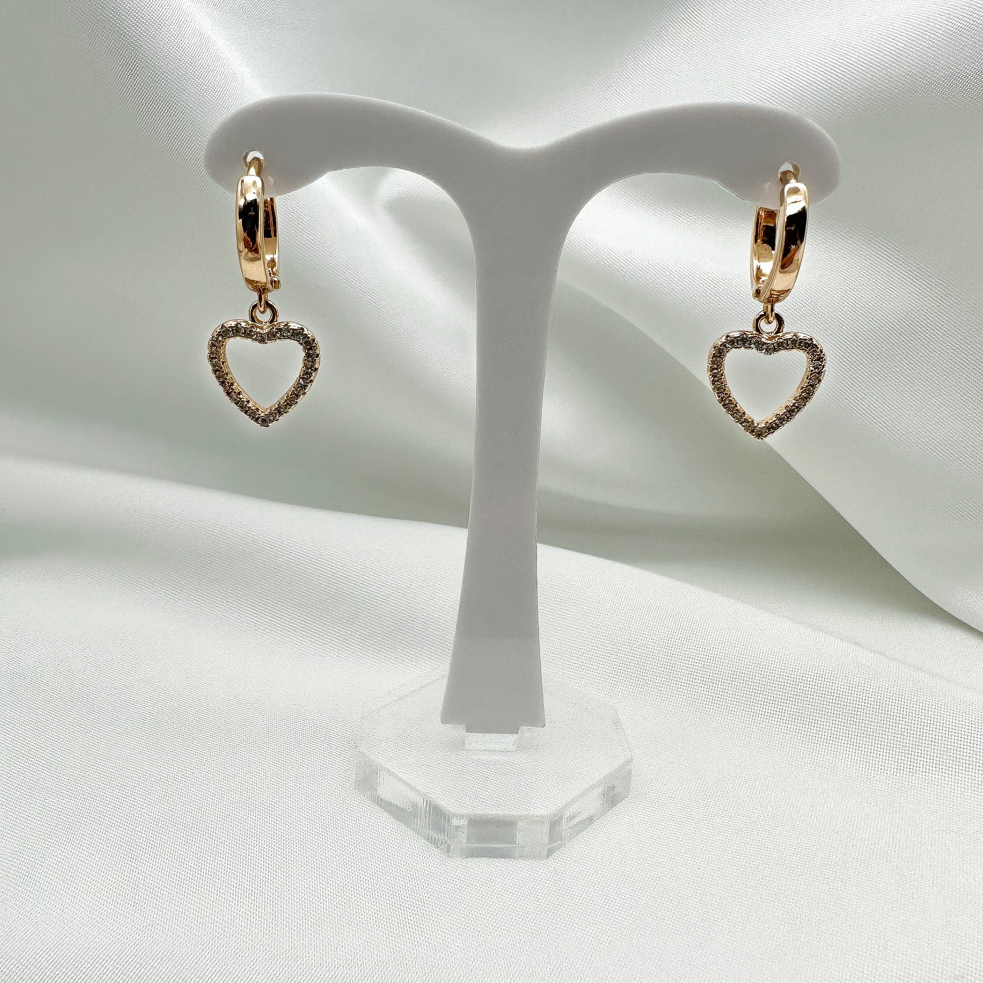 Orecchini cerchietti pendenti filigrana cuore zirconata - Gold