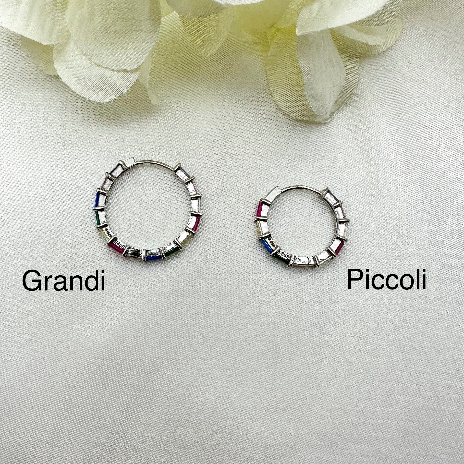 Orecchini cerchi zirconi multicolor piccoli - Siver