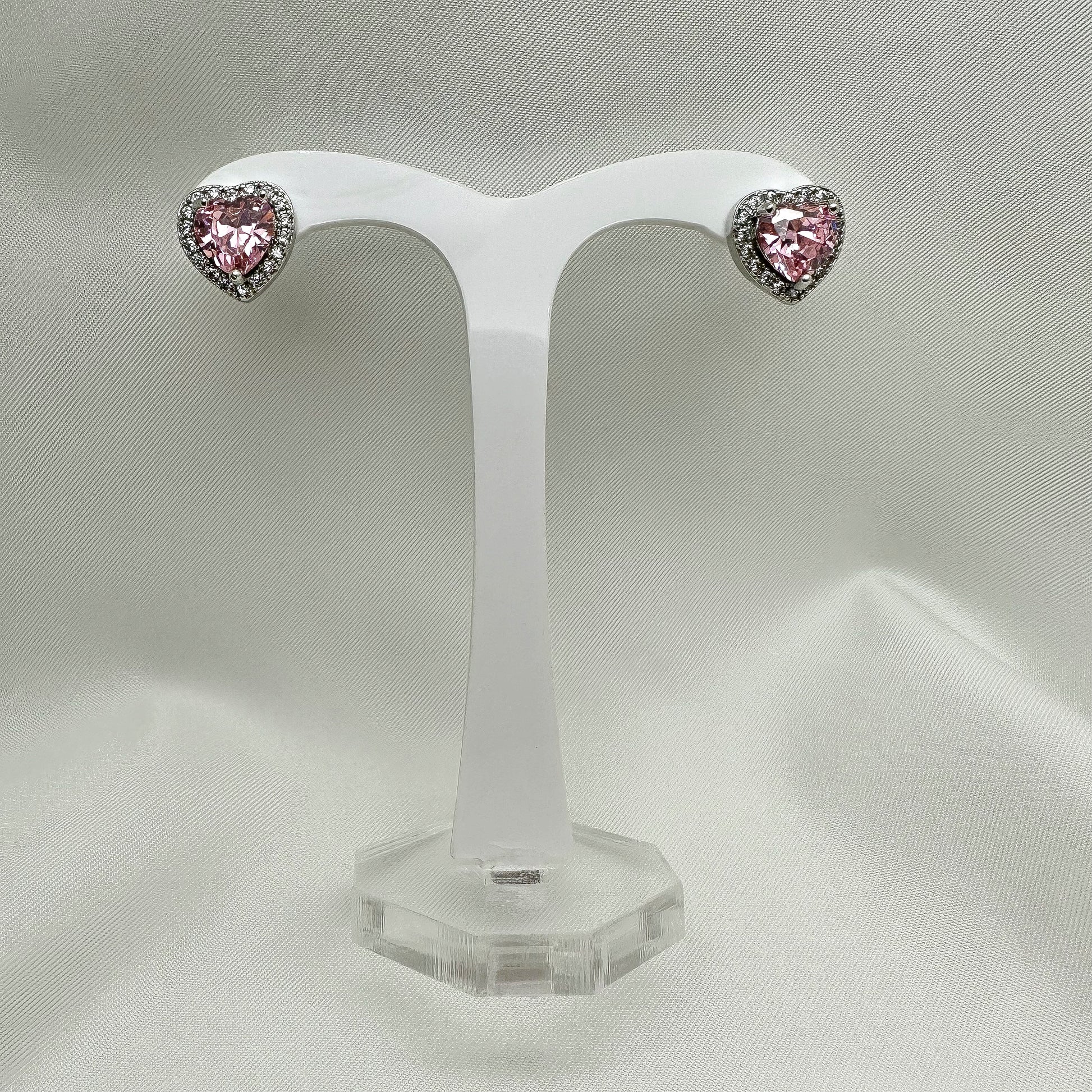 Orecchini cuore rosa e corona strass bianchi- Silver
