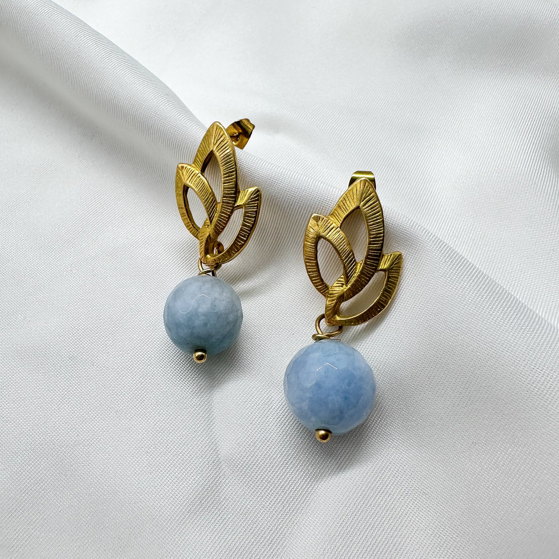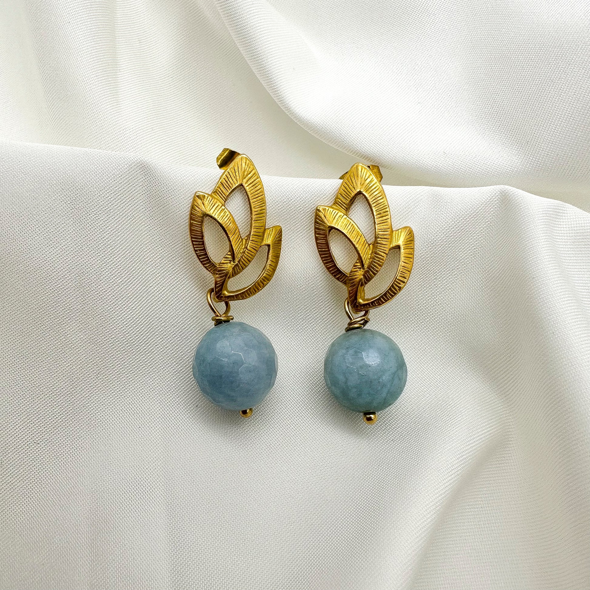 Orecchini motivo a foglia con pendente in Amazzonite - Gold